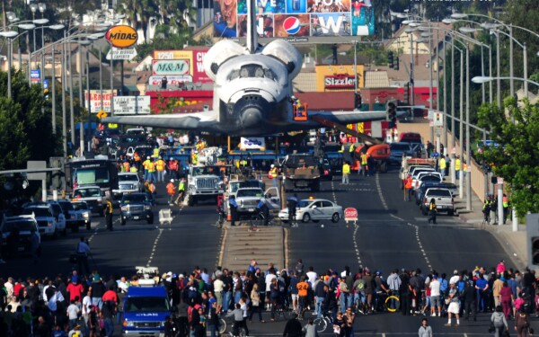 de Cape Canaveral din Florida, pentru a fi expusa in muzeul California Science Center din Los Angeles.